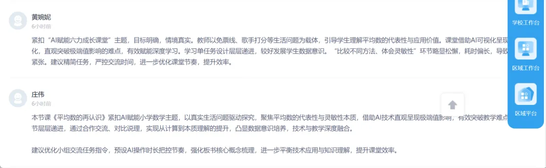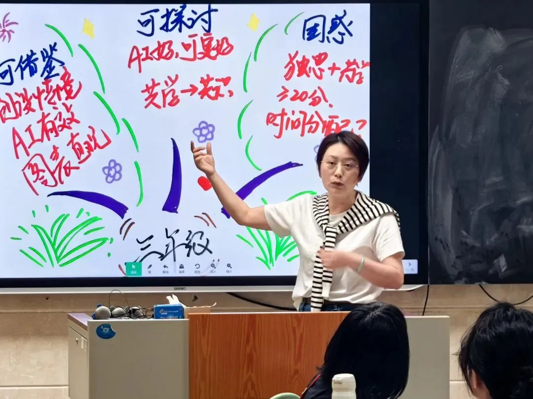 下午的研讨环节围绕六力成长课堂落地实效层层推进。活动依托AI工具生成前测报告,课堂录音纪要与智能评课内容,为课堂复盘提供科学支撑。各教研组结合AI循证系统的精准课堂分析,从六力培育视角,围绕“可借鉴、提建议、留困惑”开展卷入式研讨,重点梳理AI技术如何助力元认知力激活、建构力形成、实践力落地、表达力提升、迁移力拓展与创新力激发,并将成果梳理为可视化思维导图。教师代表聚焦六力达成度剖析课堂亮点与不足,明确AI赋能与能力培育的优化方向;五年级教研组吸纳建议,完善后续教学改进方案,让教研成果真正服务于六力成长课堂提质增效。