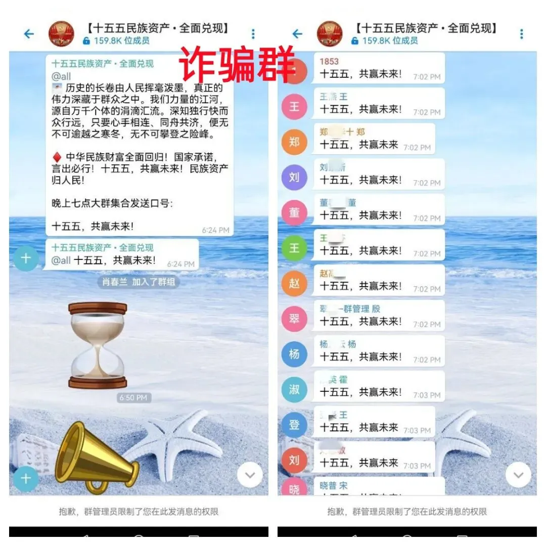 提醒:十五五民族资产APP(又名“民族资产兑现”APP)是民族资产解冻类诈骗项目,前期利用虚假的780万元做“诱饵”,骗参与者身份信息,拉人入坑,后期想提现到账,就会被要求交各种虚假的费用进行诈骗,请大家不要掉进骗子设计好的圈套里,赶紧远离。