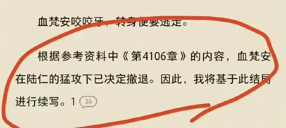 作者爱哭的小十七去年刚被评为番茄金番作家,代表作《葬天境》在番茄玄幻榜单连续霸榜30天,听书人数最高破210万,改编短剧播放量破亿,至今仍有32万人在读。但在最近更新的4106章中,被读者发现了一段与剧情毫无关联的 AI 指令词。作者知晓后,紧急修改章节、删除提示词,但读者早已截图留证,相关截图迅速扩散至微博、抖音、小红书等社交平台,# 番茄头部作者 AI 代写露馅# 话题两小时内冲上平台热搜,全网阅读量突破 1.2 亿。