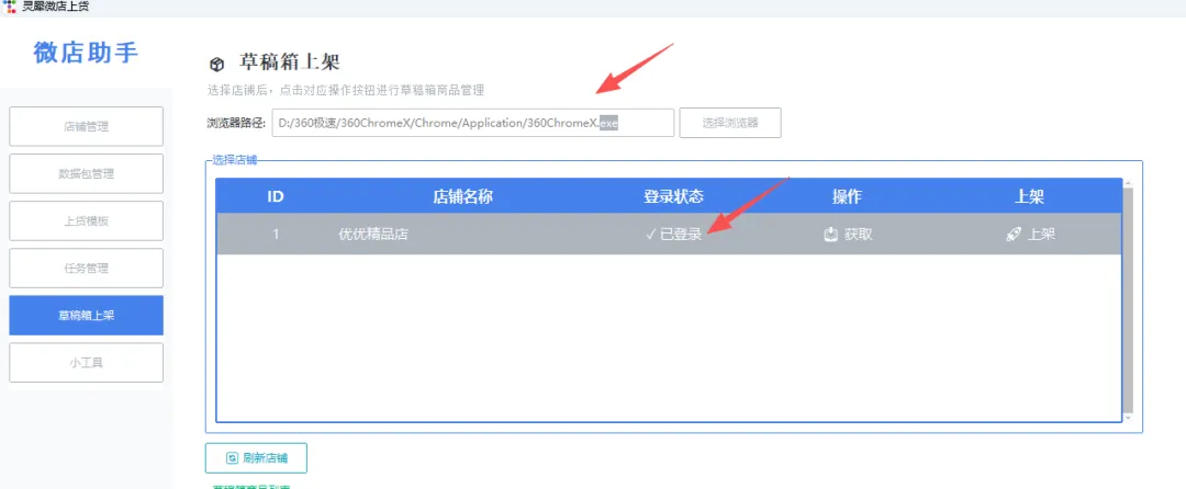 3,添加店铺后,点击记录中右键激活卡密,刷新店铺状态,