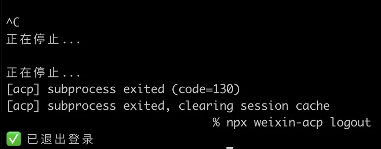 npx weixin-acp logout