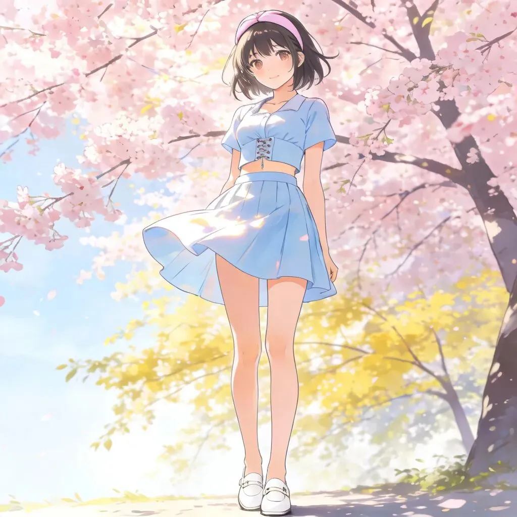 短款的上衣,露出一点点腰线,然后搭配高腰的A字短裙,A字裙刚好把胯和大腿的肉都盖住,只露出细的小腿,看起来腿又长又细,而且很甜美,约会穿刚好。