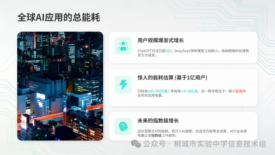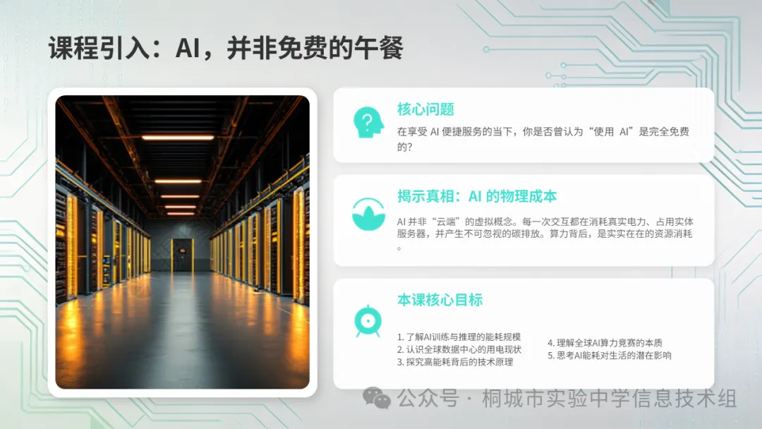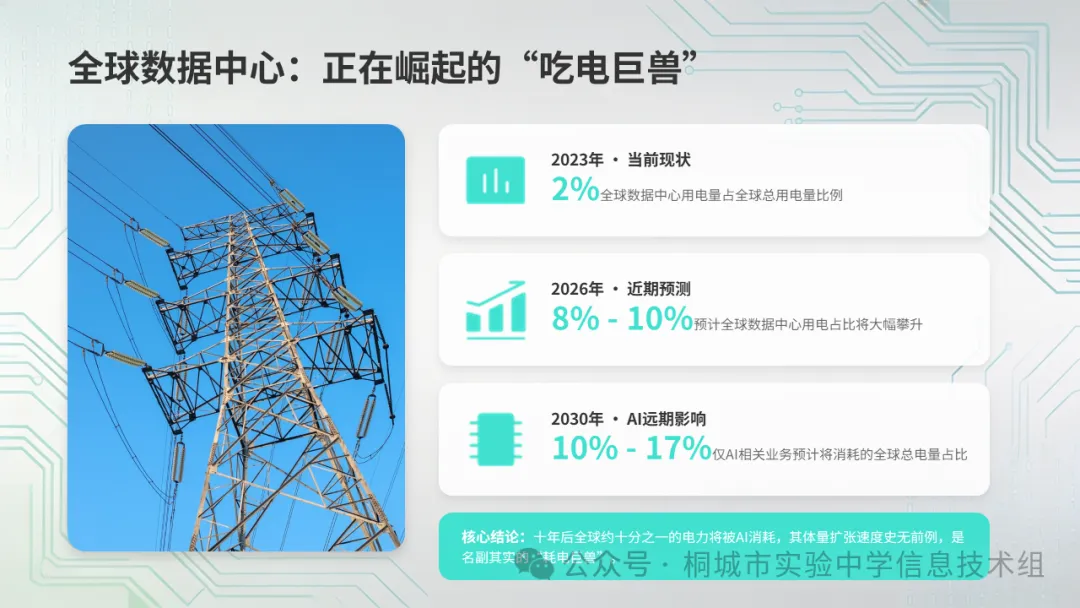 你们现在看到了:AI不只是"软件",它有真实的物理消耗——电力、芯片、水资源、碳排放。