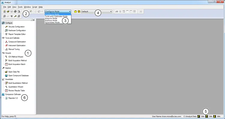 1. 双击 Analyst Software 图标打开控制软件,Analyst 软件默认布局如下图所示: