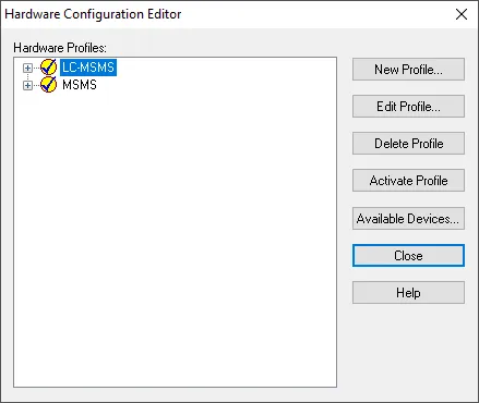 2. 激活硬件配置: • 在导航栏中双击 Configure -> Hardware Configuration; • 在 Hardware Configuration Editor 对话框中选择一个预设好的硬件配置(一般至少包括 LC-MS 联用和单 MS 两个配置本次进行液质联用的批分析,因此选择 LC-MSMS); • 点击 Activate Profile 激活硬件配置。