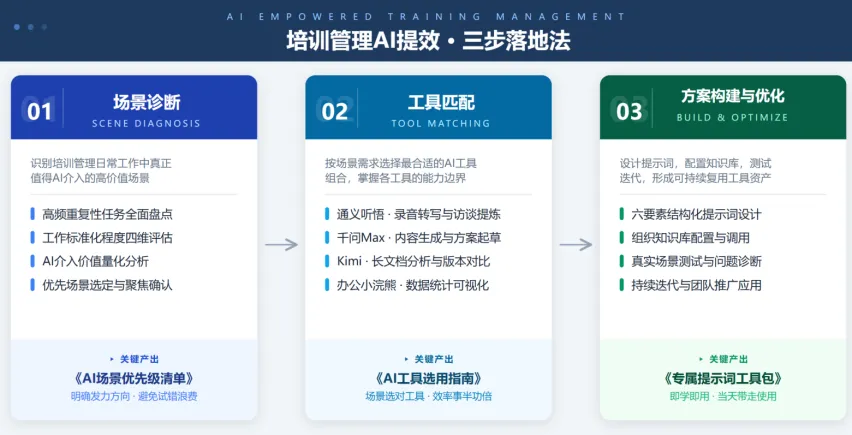 从培训岗的真实高频任务出发,找到AI可以介入的关键环节,设计可立即落地的操作方案