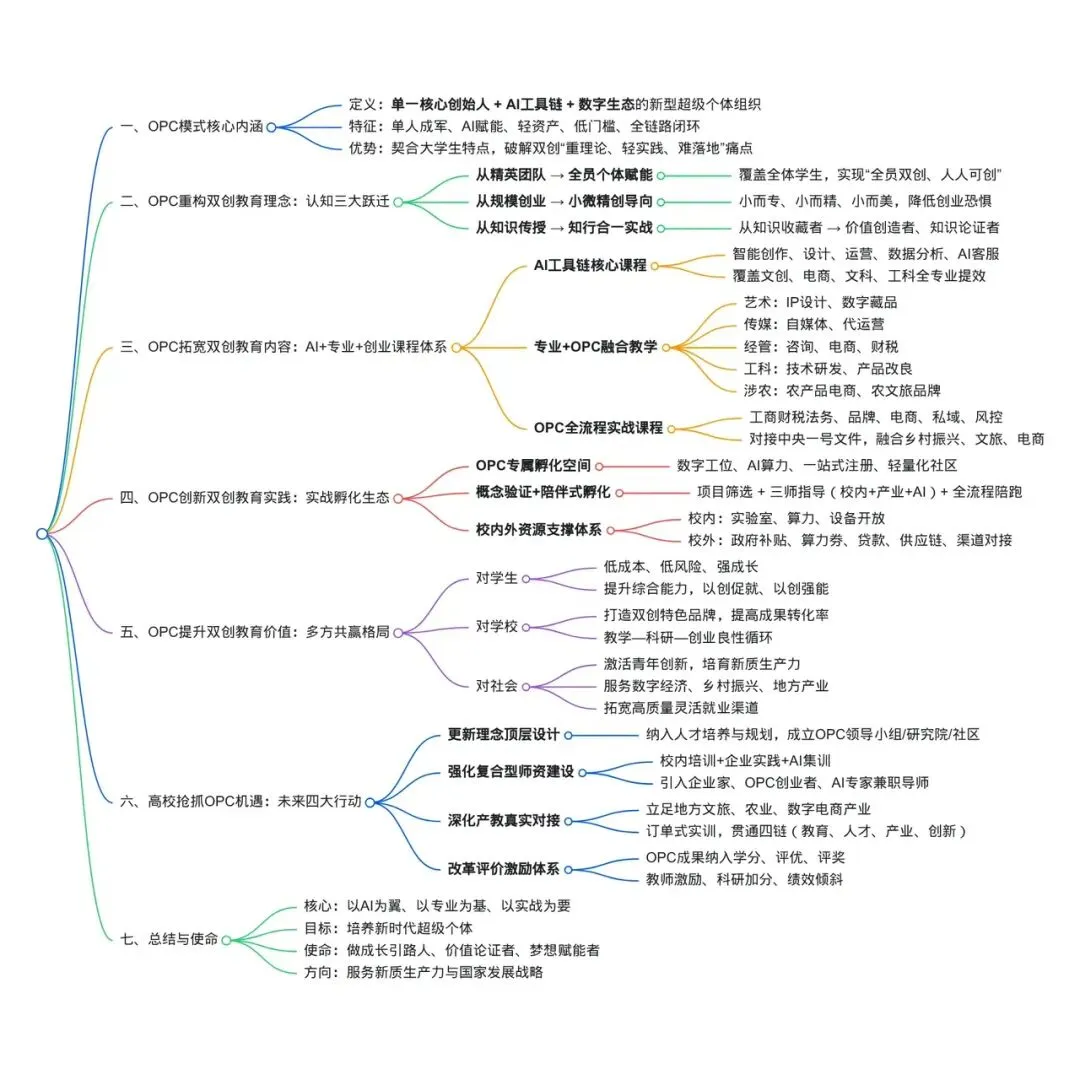 AI时代OPC创业浪潮已至,高校必须主动应变、积极作为,将OPC机遇转化为双创教育发展实效,以知行合一的态度,全面推进教育改革与实践创新。
