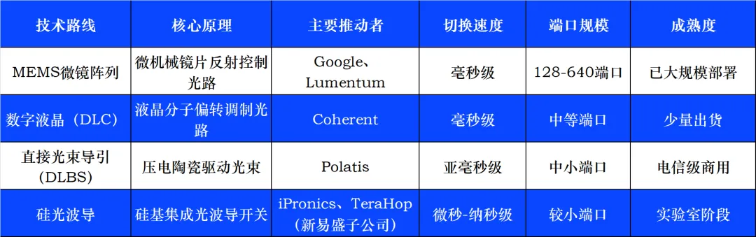 当前OCS领域存在四条主要技术路线,各有适用场景: