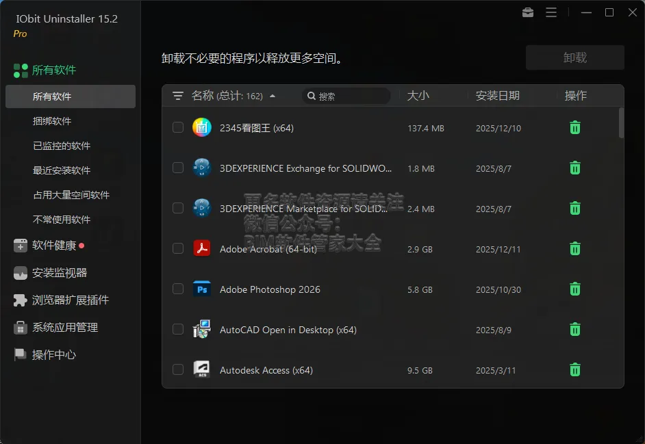 公众号关键词回复:卸载工具 IObit Uninstaller