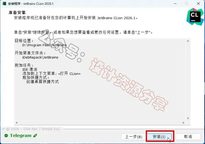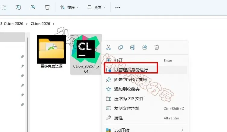 1、下载CLion 2026软件安装包到电脑上,右键选择【解压到当前文件夹】2、找到【CLion 2026...】应用程序,右键选择【以管理员身份运行】它4、软件默认安装在C盘,可自定义更改软件安装位置,这里小编选择安装在D盘;点击【下一步】12、点击【Create】