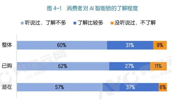 当前用户,对 AI 智能锁的认知仍处于初级阶段,存在认知模糊、误解等问题,影响消费需求释放。