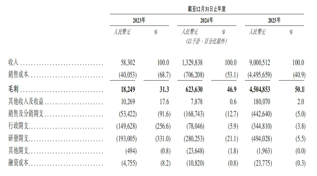 首先从业绩层面来看,招股书数据显示,2023年至2025年,思格新能营收分别为0.58亿元、13.30亿元、90.01亿元,2025年营收同比增长约576.8%;净利润分别为-3.73亿元、0.84亿元、29.19亿元,2025年净利润同比增长约3381%;毛利率也从31.3%大幅提升至50.1%,这样的高毛利率水平在全球储能市场中较为罕见。