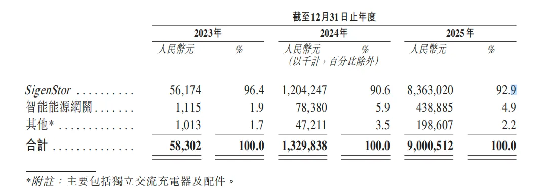 招股书数据显示,2023年至2025年,SigenStor产品销售额占总营收比例分别高达96.4%、90.6%、92.9%,连续三年为公司贡献超九成收入。