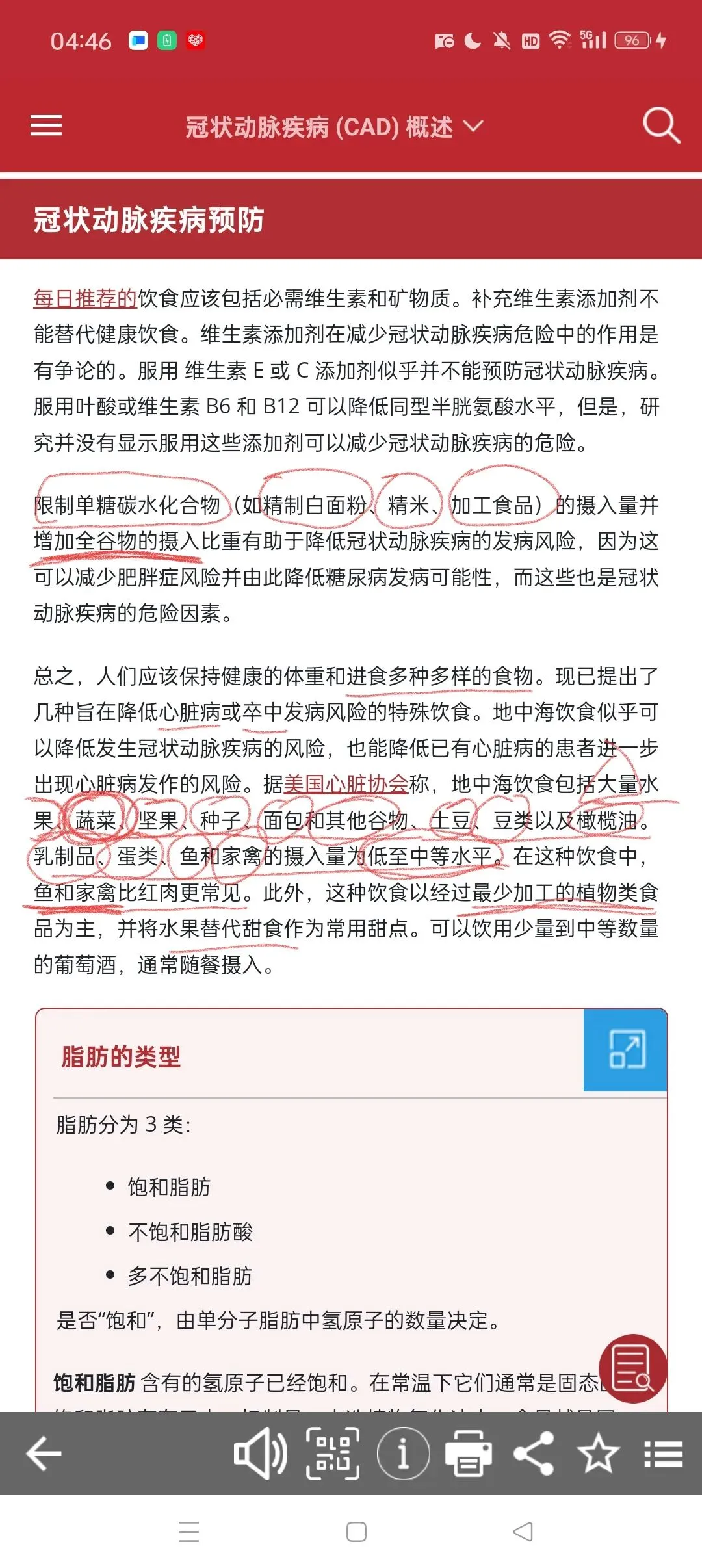 限制单糖碳水化合物(如精制白面粉,精米,加工食品)的摄入量并增加全谷物的摄入比重有助于降低冠状动脉疾病的发病风险,因为这可以减少肥胖症风险并由此降低糖尿病发病可能性,而这些也是冠状动脉疾病的危险因素。