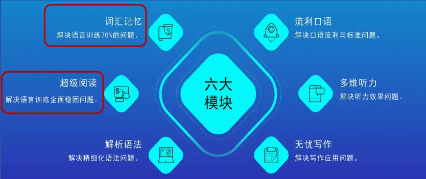 【分模块化学习】是语言能力提升最快的路径,所以,我们采取了一套颠覆性的语言能力提升训练方案: