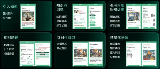 通过六步交互式语法训练,进行AI精准匹配,游戏闯关,真正的学以致用。