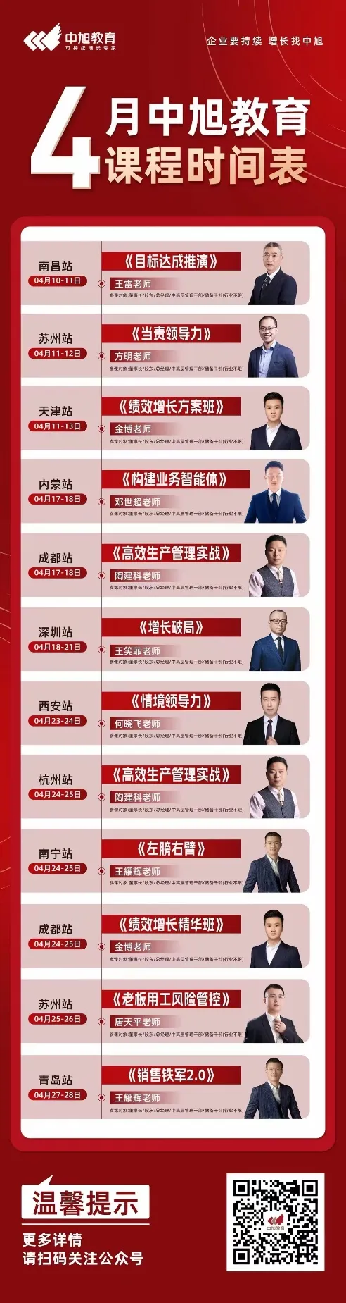 中旭教育增长商学致力于将前沿管理思想,凝结为切实可行的增长范式,不仅为企业指明路径,更推动管理者实现认知升级与能力跃迁,保障增长战略的闭环执行。