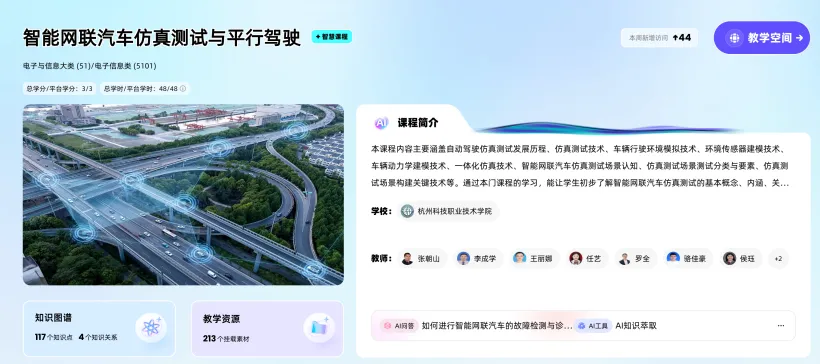 随着汽车产业加速向智能化、网联化转型,培养具备跨学科技术能力的复合型人才成为职业教育的关键任务。杭科院紧跟行业发展趋势,依托人工智能技术赋能教学创新,率先完成《智能网联汽车仿真测试与平行驾驶》《汽车单片机技术》两门核心课程的智慧化升级,并启动智慧课程与数字教材的一体化规划建设,为汽车技术人才培养注入新动能。