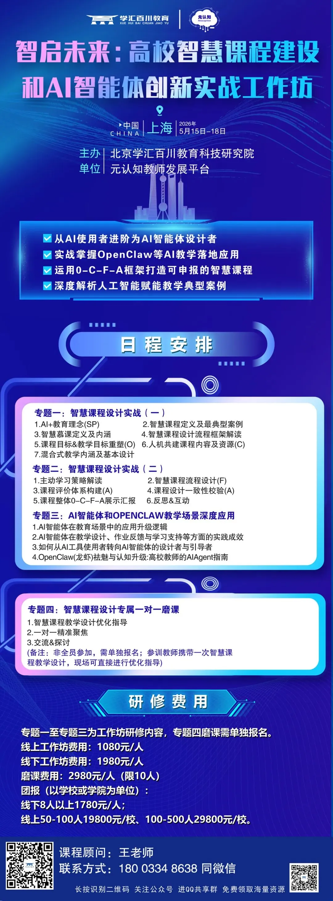 【5月15日-18日•重庆】智变·重构·新生态——AI赋能课程思政设计创新与多元评价体系构建实战研修班