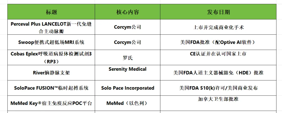 1.Corcym公司新一代免缝合主动脉瓣Perceval Plus LANCELOT上市并完成商业化手术,是外科瓣膜置换术重要里程碑。