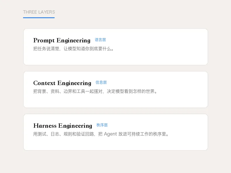 前两天又刷到 「Harness Engineering」 这个词的时候,我第一反应其实挺真实的,又来了。