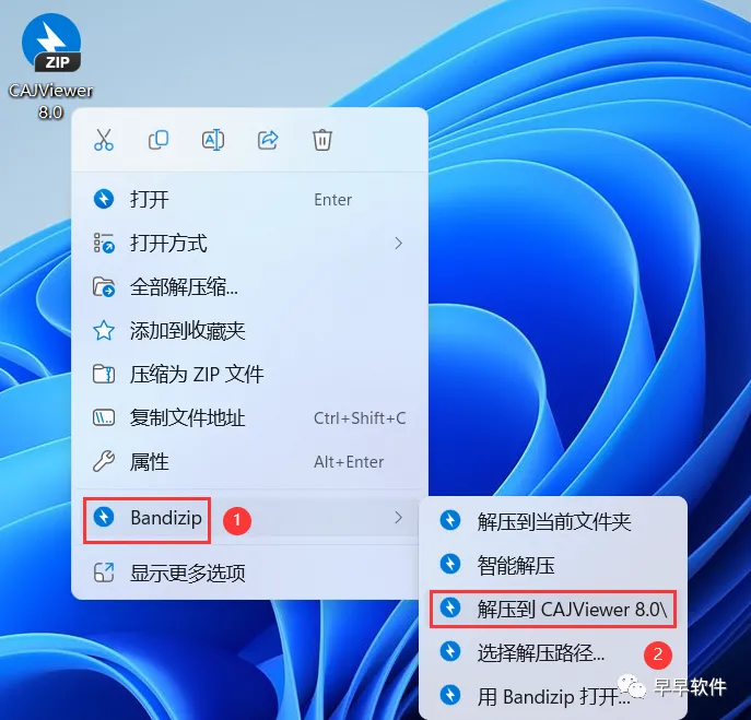 1、下载CAJViewer 8.0软件安装包到电脑上,右键选择【解压到CAJViewer 8.0\】