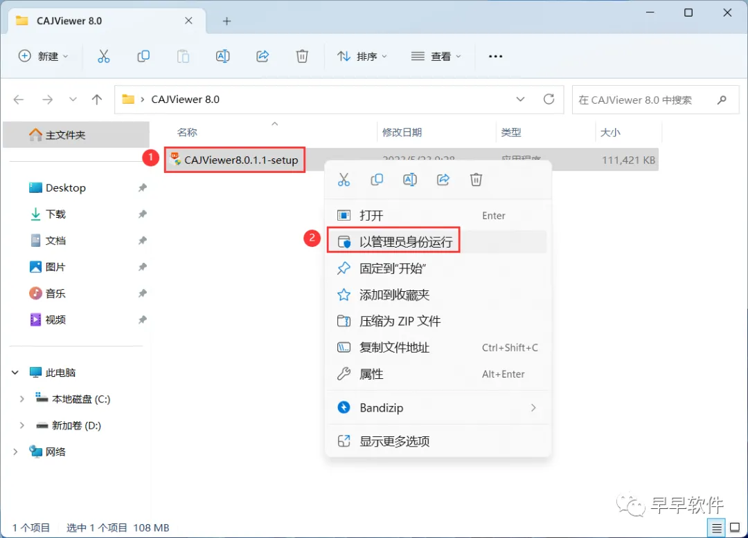3、找到【CAJViewer8.0.1…】应用程序,右键选择【以管理员身份运行】它