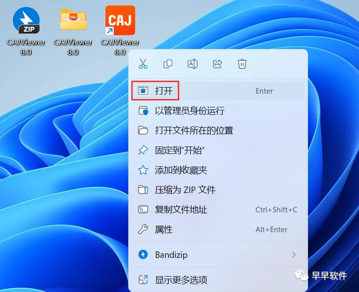 8、回到桌面,右键桌面上的【CAJViewer 8.0软件图标】,点击【打开】