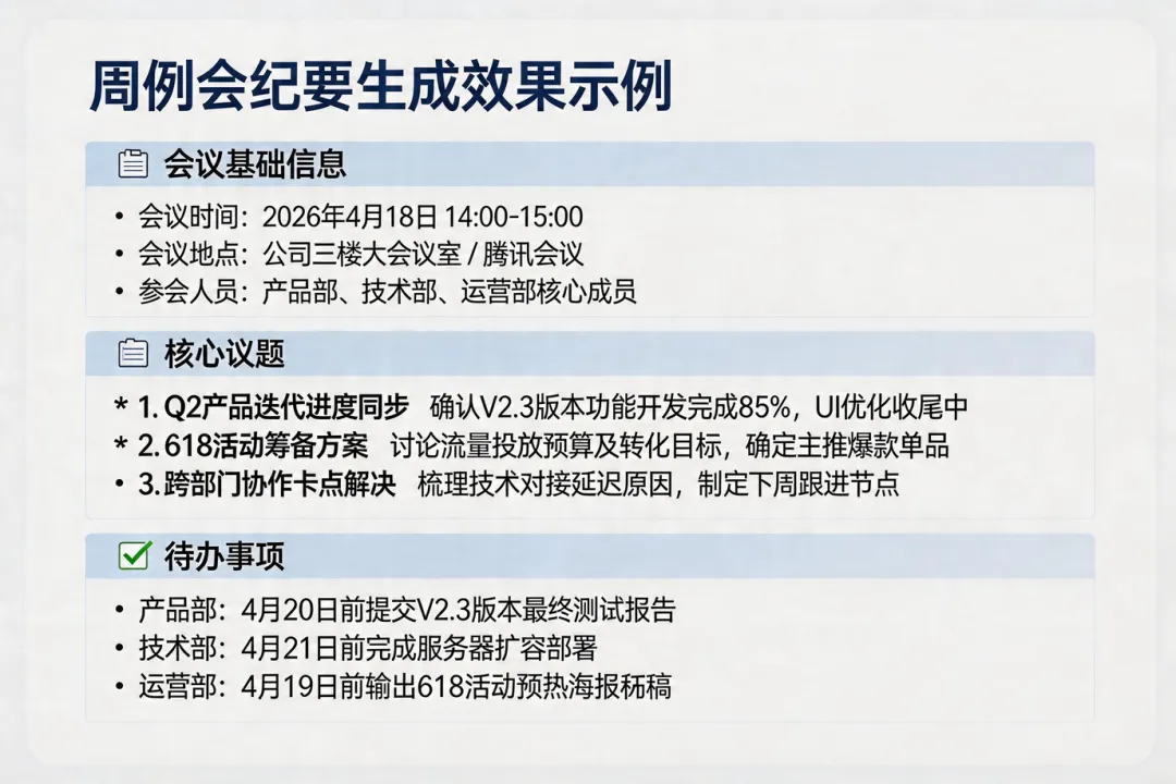 完全贴合你写周例会纪要的真实流程,3 步就能搞定,新手零门槛。