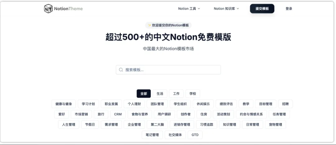 这是一个专门分享免费notion模版的网站,目前拥有500多个模版了,分类比较详细,基本涵盖了各行业,无论是学生还是职场朋友都用得到。