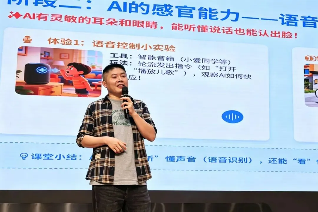亲切幽默的李先生为孩子们带来了“AI 奇妙之旅:从简单到神奇”的精彩讲座。他凭借扎实的专业知识,从生活中随处可见的智能科技入手,带领孩子们初识 AI,探索科技奥秘,畅想未来智能世界,为孩子们开启了一场生动有趣的 AI 探索之旅。新颖独特的课堂形式、生动有趣的 AI 科普知识,深深吸引着在场每一位同学。