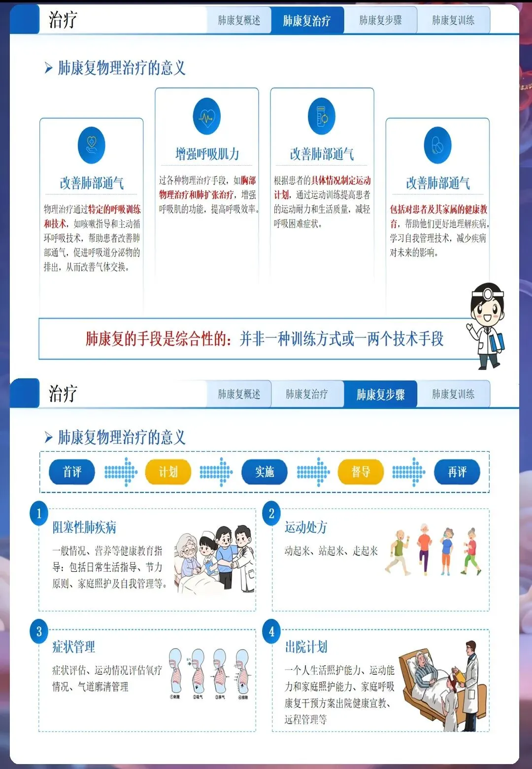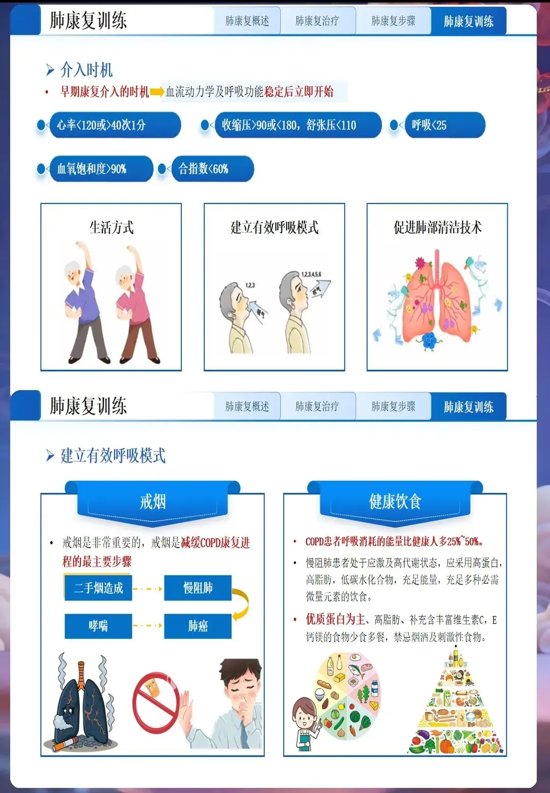说到肺康复训练,很多护士可能觉得这是康复科的事,跟普通病房关系不大。其实不是这样,呼吸系统疾病患者住院期间就应该开始康复训练,越早介入效果越好。