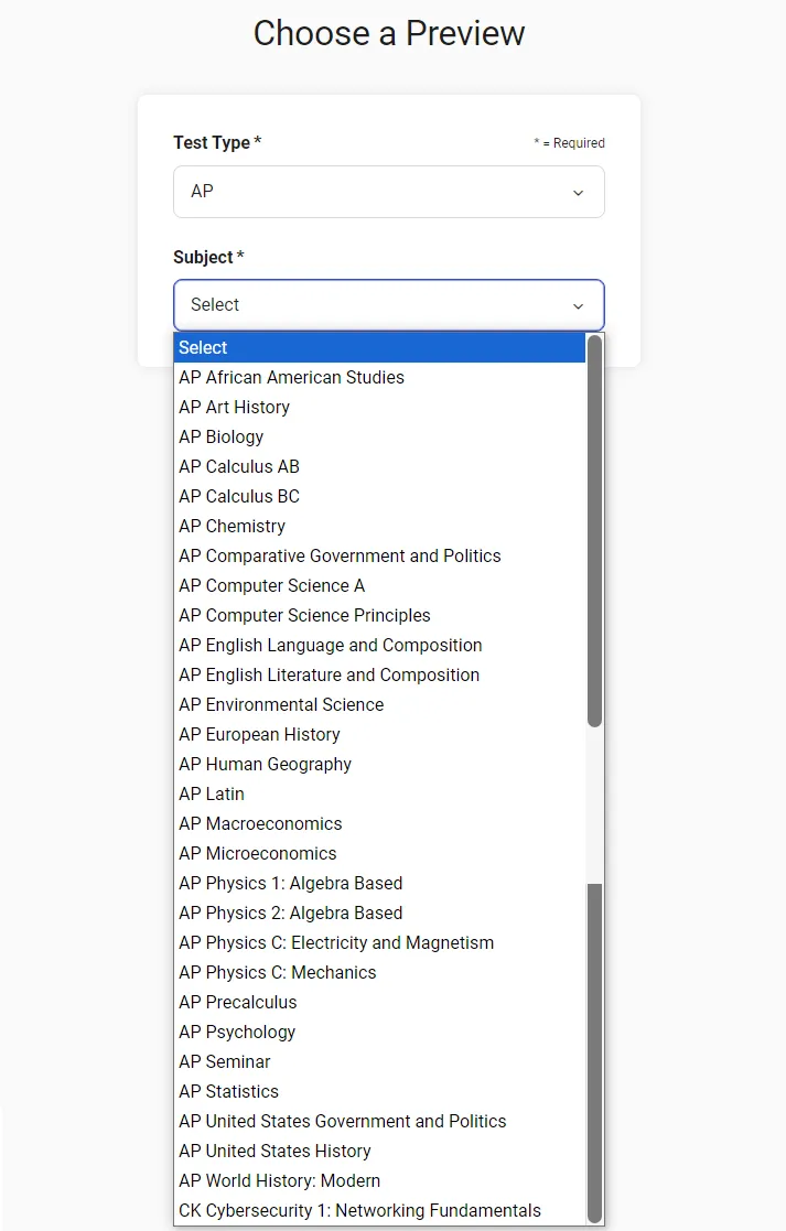 🔽 Test Type选择【AP】选择需要进行测试的学科。