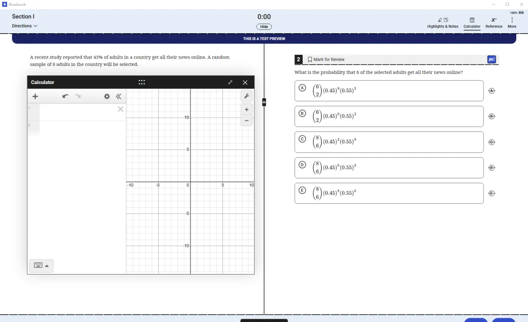 所有需要计算器的科目,考生可以使用CB官方允许的手持计算器,或者使用Bluebook内置的Desmos计算器。去年没有开放的AP统计,今年也加入了内置计算器的使用。