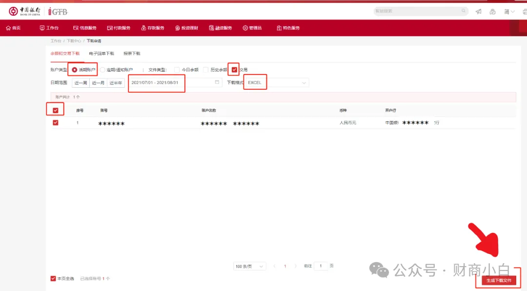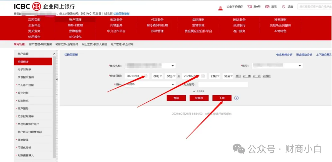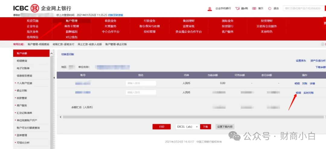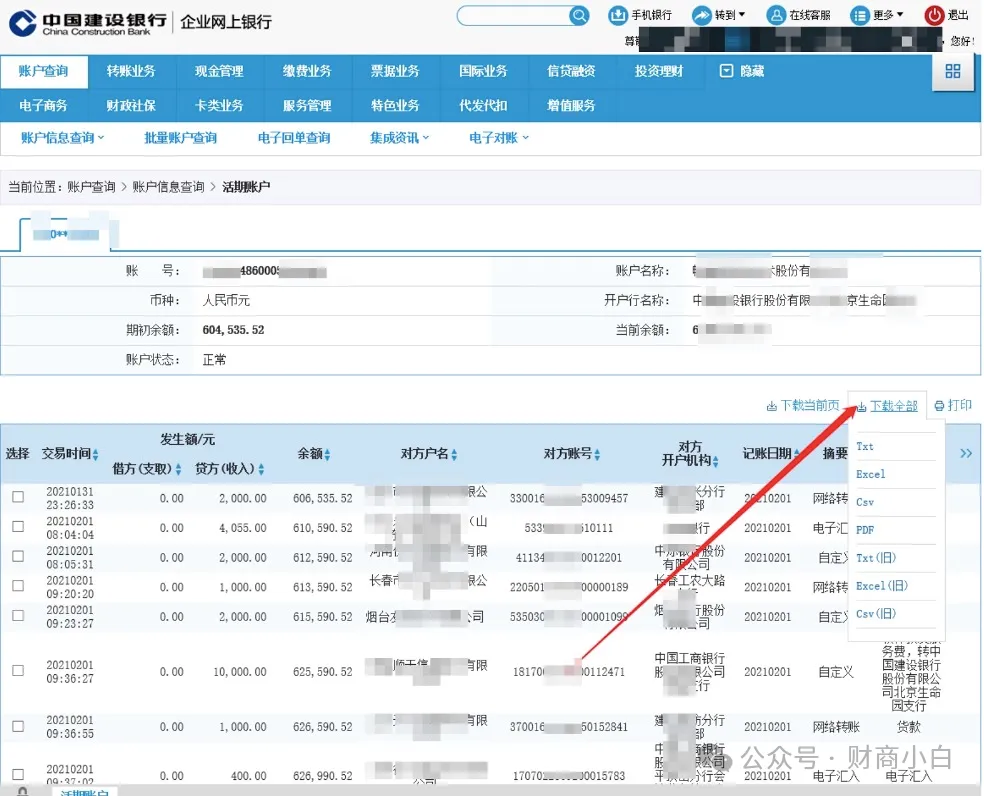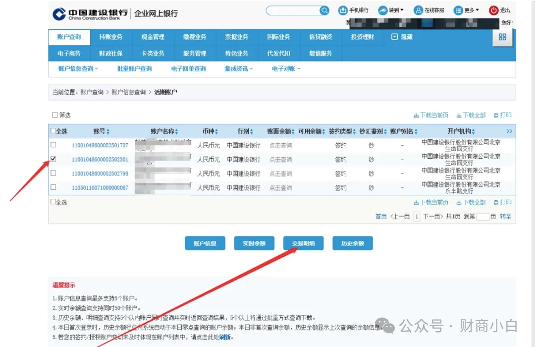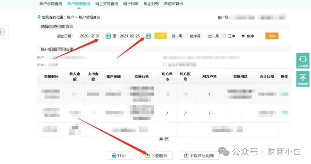 说明:各大行的对公交易明细展示内容基本一致;区别在于是否盖章;部分行交易明细不带公章;如需盖章版,建议下载“电子对账单”或“电子回单”。