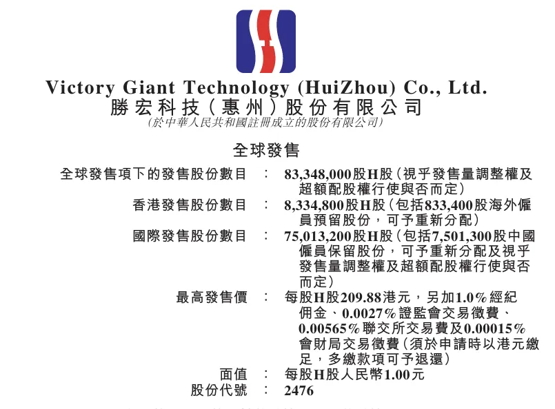 公司4月13日至4月16日招股,发行约8334.8万股H股,每股最高发售价为209.88港元。其中,香港发售占10%,国际发售占90%,另有超额配股权15%。3