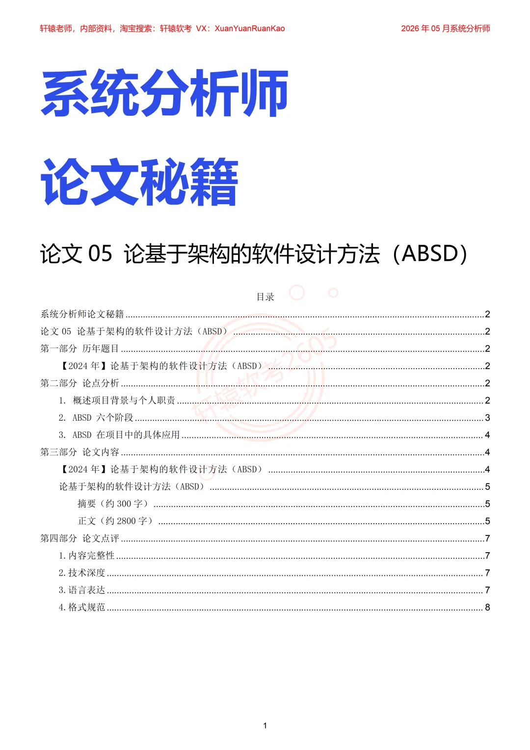 【2605系分】论文05 论基于架构的软件设计方法(ABSD)系统分析师论文秘籍