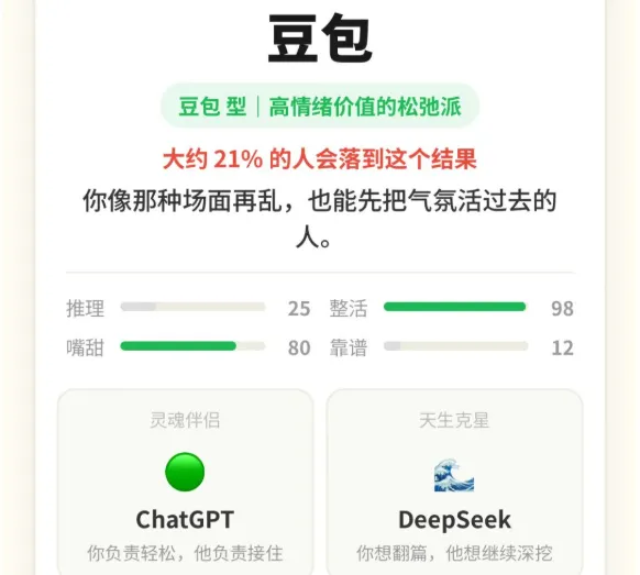 先说这是个啥——一个测试你AI人格的小网站,回答几道题,告诉你你像豆包还是像千问还是像Claude