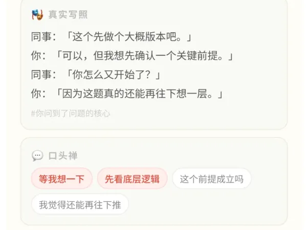 周末躺在沙发上刷手机,突然想到现在AI口癖挺多,挺有意思的,什么稳稳接住你,不绕弯子直白说,狠狠干