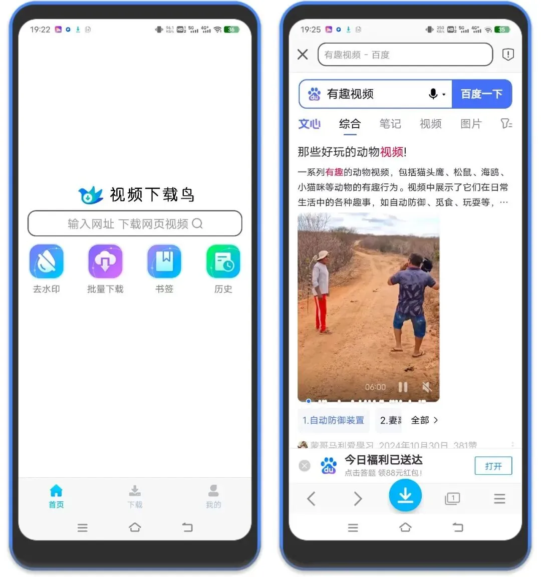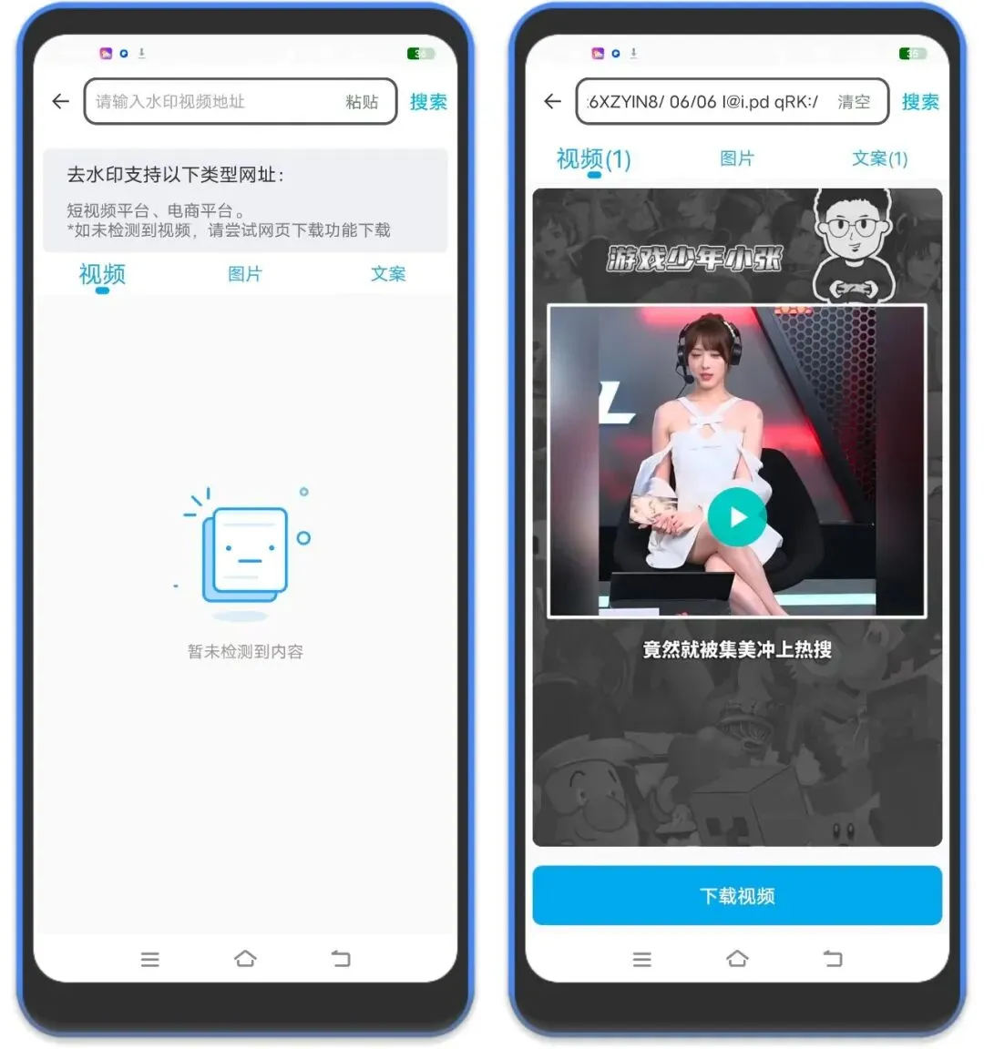 3、也有短视频无水印下载功能,比如某音某手,还有电商平台视频,粘贴链接,点击搜索,然后下载就行,这种下载下来的是无水印的!
