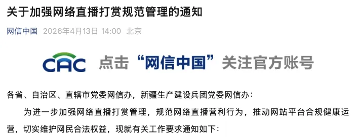 近日,中央网信办发布《关于加强网络直播打赏规范管理的通知》。《通知》要求平台须明示打赏规则,为用户提供消费限额设置与提醒功能,不得未经同意公开打赏数据或单纯以打赏额排名;平台还需建立打赏负面清单,加强异常行为处置。同时,《通知》严禁向8周岁以下未成年人提供打赏服务,8至16周岁未成年人需监护人同意,16周岁以上未成年人也需同意或核验收入证明。此外,《通知》要求对违规主播账号的打赏权限设置冷却期,并禁止直播间内存在诱导打赏等不良互动内容,旨在促进行业健康有序发展。(来源:微信公众号@网信中国)