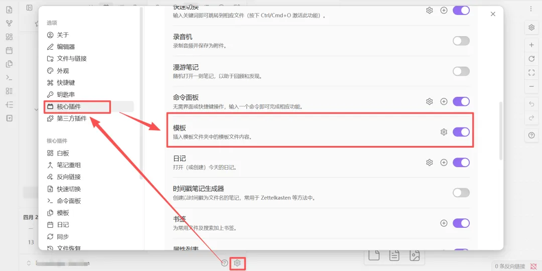 Obsidian 内置的 Templates(模板)插件,是官方核心效率工具。它支持快速调用预设好的笔记结构、固定文本与变量,一键插入当前笔记,显著减少重复输入。