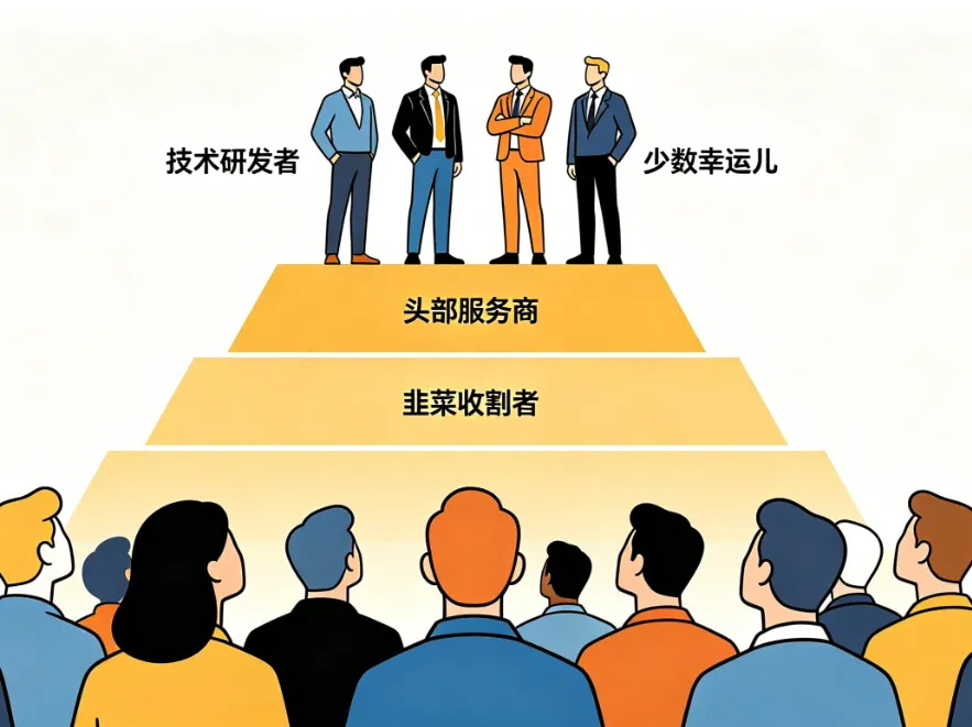 但问题的核心的是:能赚到钱的,从来都不是“普通人”,而是掌握资源、技术、渠道的少数人。那些对着普通人宣传“零门槛、高回报”的,本质上都是想割韭菜的镰刀。