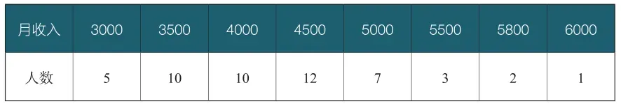 例如现在对某企业50位员工的工资进行统计调查,得到的数据组如下表所示。