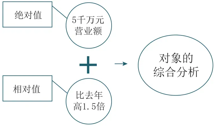 例如分析A部门业务量时,先分析A部门在某时间段的业务量大小(绝对值),再分析A部门与其他B、C部门的业务量大小比较(相对值),从而综合判断A部门的业务表现。