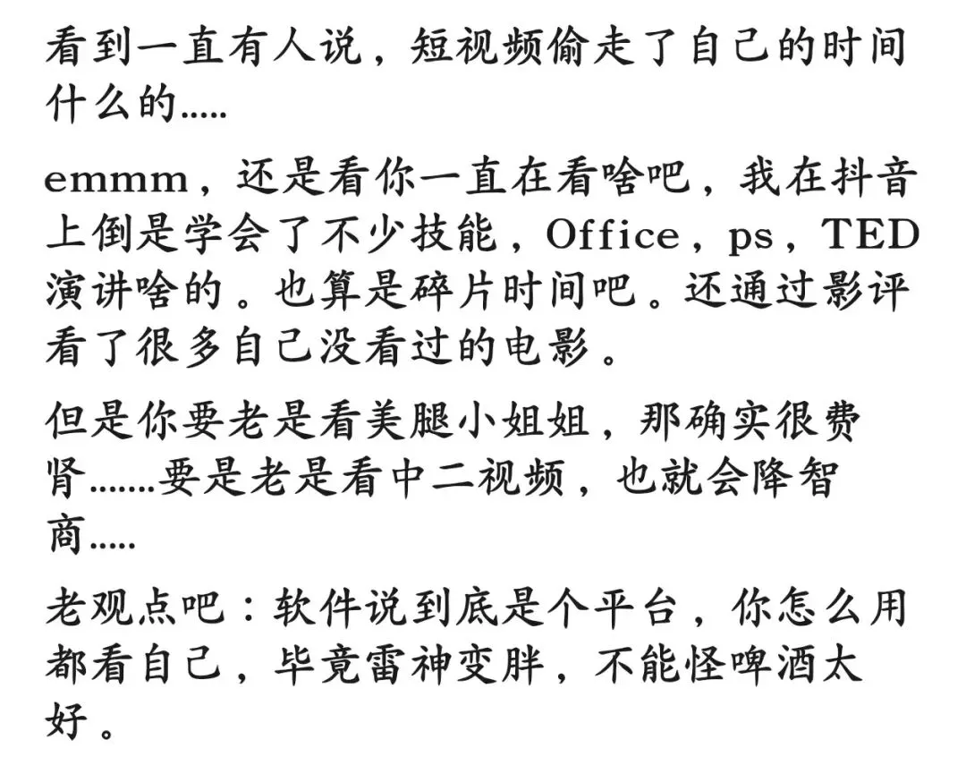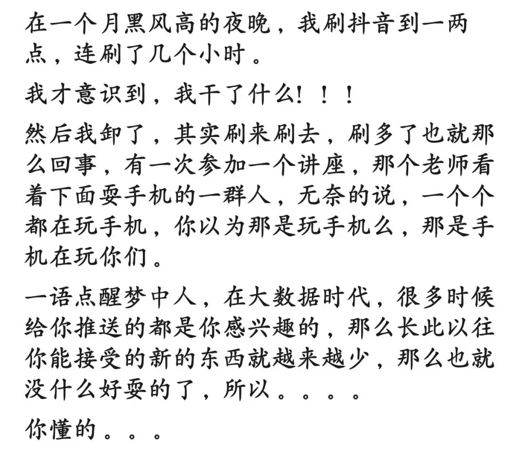 抖音的视频时间太短,智能推送做的太好,确实很容易上瘾。