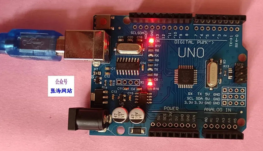 (1)通过数据线,把Arduino UNO 主板与电脑连接在一起;