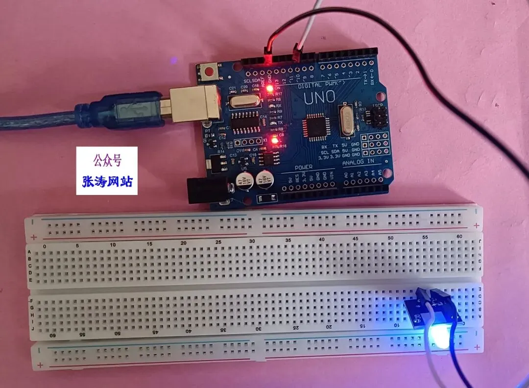 因为直接使用 Arduino UNO 主板上的发光二极管(LED),因此不需要额外的硬件连线。