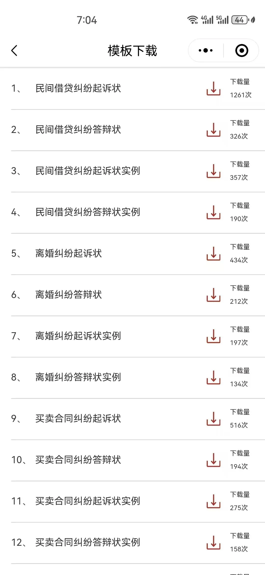 微信搜索小程序“人民法院在线服务(最高人民法院)”→辅助工具→文书模板→部分案件民事起诉状、答辩状示范文本(试行)进行下载。