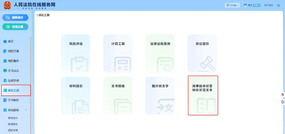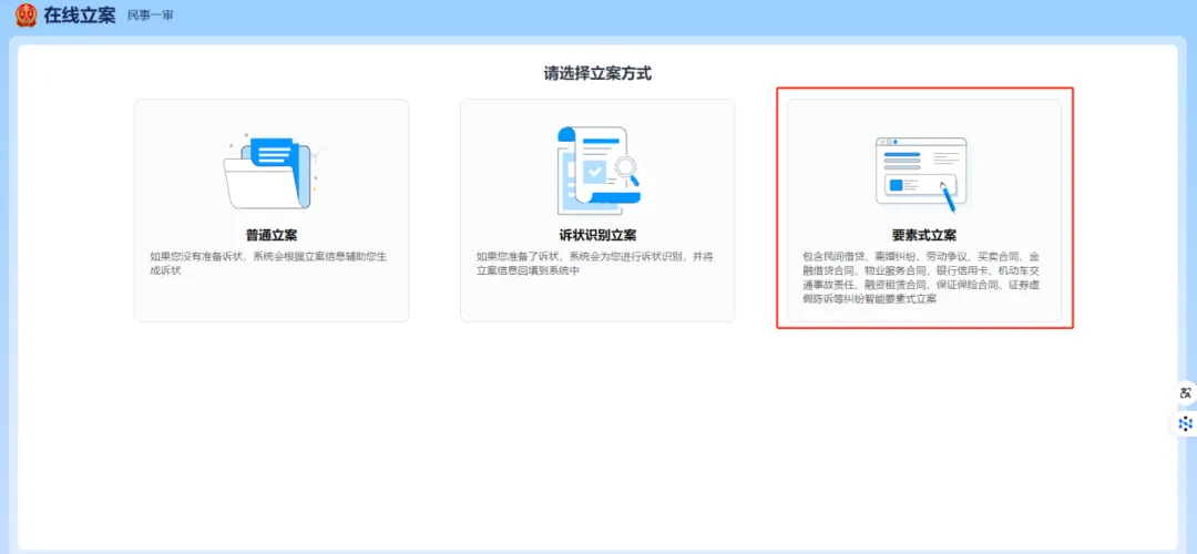 注意:如需要使用模板立案,可选择“在线立案”→民事一审→要素式立案。